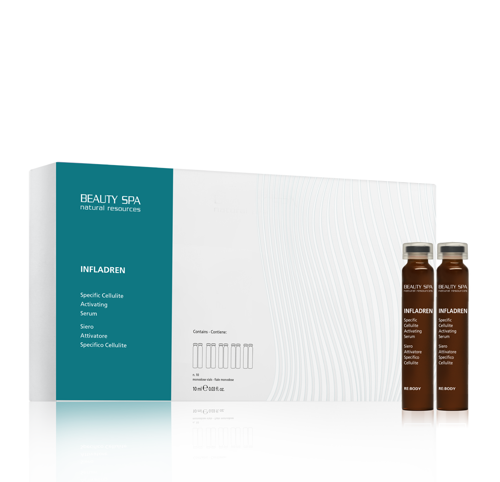 Infladren è un siero professionale ad alta concentrazione idroalcolica studiata per il trattamento mirato della cellulite fibrosa e compatta dove il tessuto appare ispessito, poco elastico e scarsamente drenato.